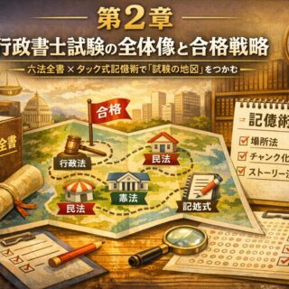 第2章:行政書士試験の全体像と合格戦略―― 六法全書 × タック式記憶術で「試験の地図」をつかむ ――はじめに第1章では、行政書士の3つの業務(提出・権利・証明)を、場所法・チャンク化・ストーリー法で…