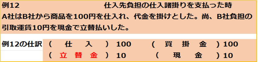 - 取引先負担の仕入諸掛りを立て替えた時 仕入先が負担すべき引取運賃を当社が立て替えて支払った時は、後で仕入先から代金を受け取る事が出来ます。したがって、この場合の諸掛りは立替金【資産】として処理します。
