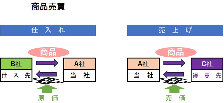 仕入れとは、企業が商品を買ってくること。まるでお買い物マニアのように、商品をゲットします。その時の金額を原価と言います。