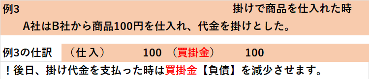- 掛けで商品を仕入れた時 商品を掛けで仕入れた時は後で代金を支払う義務が発生する。この「後で支払う義務」は買掛金【負債】で処理します。