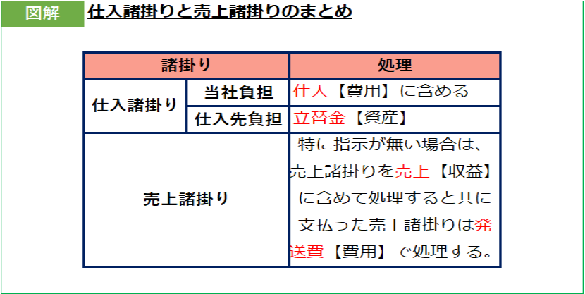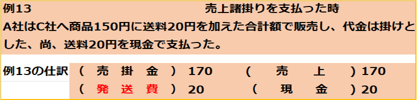 - 売上諸掛りを支払った時 商品を売り上げた時、諸掛りを支払った場合、発送費【費用】として処理します。尚、簿記3級では、売上諸掛りを売上【収益】に含めて処理します。