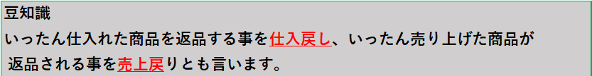 そして、返品。これは商品の品違い等を理由に、商品を仕入先に戻したり、得意先から商品が戻ってくること。まるで「ごめんなさい、これちょっと違うんですよね…」と言うようなものです。