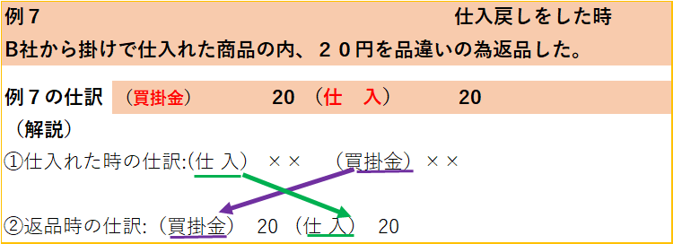 - 仕入れた商品を返品した時 仕入戻しをした時はいったん計上した仕入【費用】を取り消します。尚、代金は通常、買掛金【負債】と相殺します。つまり仕入戻しをした時は、返品し分だけ仕入れた時の仕訳の逆仕訳(仕入れた時の仕訳の借方科目と貸方科目を反対にした仕訳)をするのです。